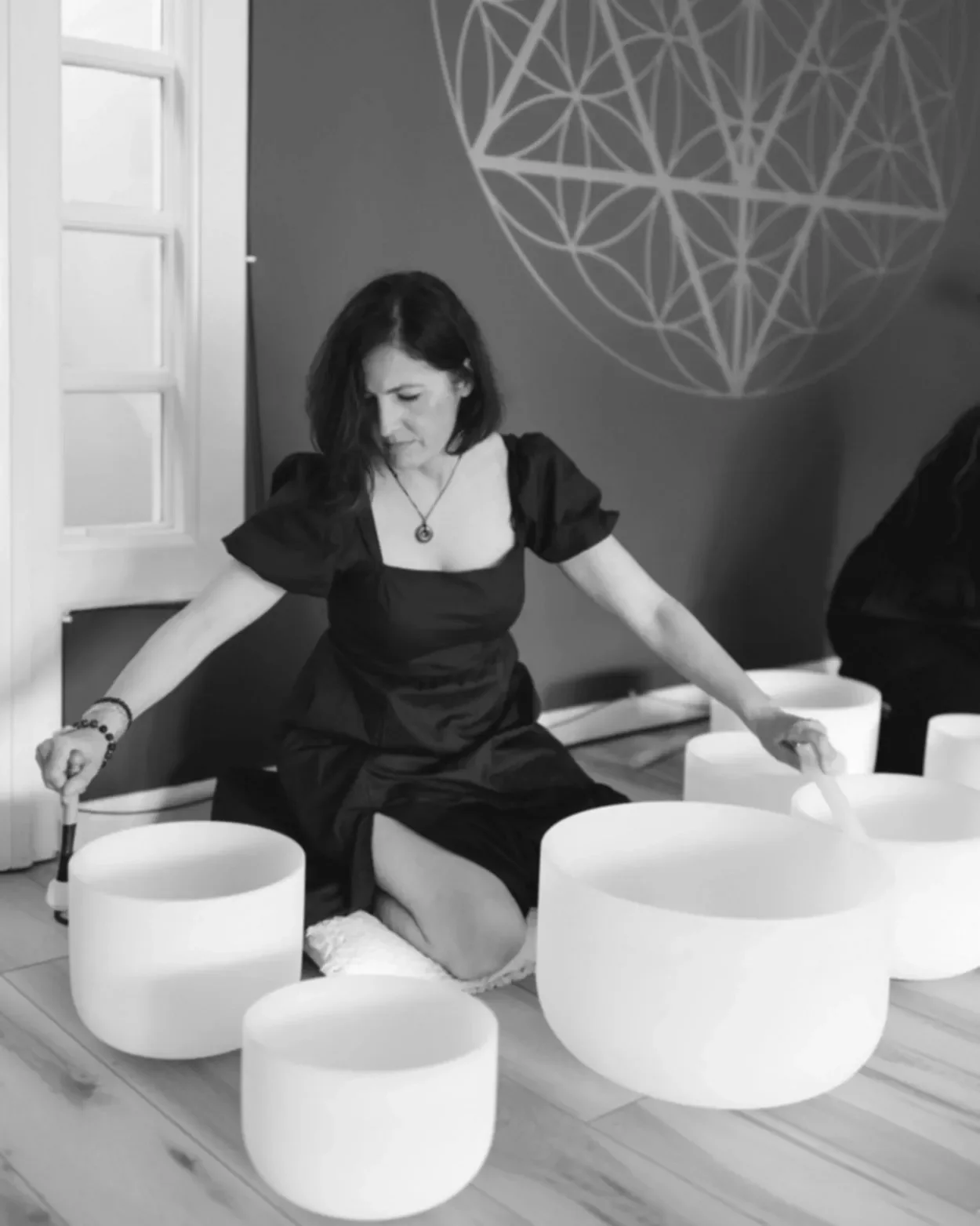 While resting with needles, crystal sound bowls are played creating binaural beats that entrain the brain into a deep meditative state. The vibrating crystal conducts frequencies to the body that can be felt and this is why it is called a “sound bath” - you can feel the frequencies washing over you.Sound bath meditation with binaural beats is an immersive wellness experience that utilizes sound frequencies to promote relaxation and enhance mental well-being. This practice offers several notable benefits: - Deep Relaxation: Sound baths create a soothing environment, allowing participants to enter a meditative state. The combination of harmonious sounds and binaural beats can help reduce stress, anxiety, and tension, encouraging a profound sense of calm.